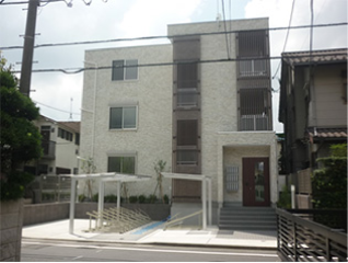 - 相続人が相続された、老朽化アパートの建替え計画。広大な敷地の土地利用計画を提案し、1 期、2 期、3 期計画で需要を見て実行。エントランスアプローチ、外壁デザイン等をデザイナー採用し、差別化を図る。